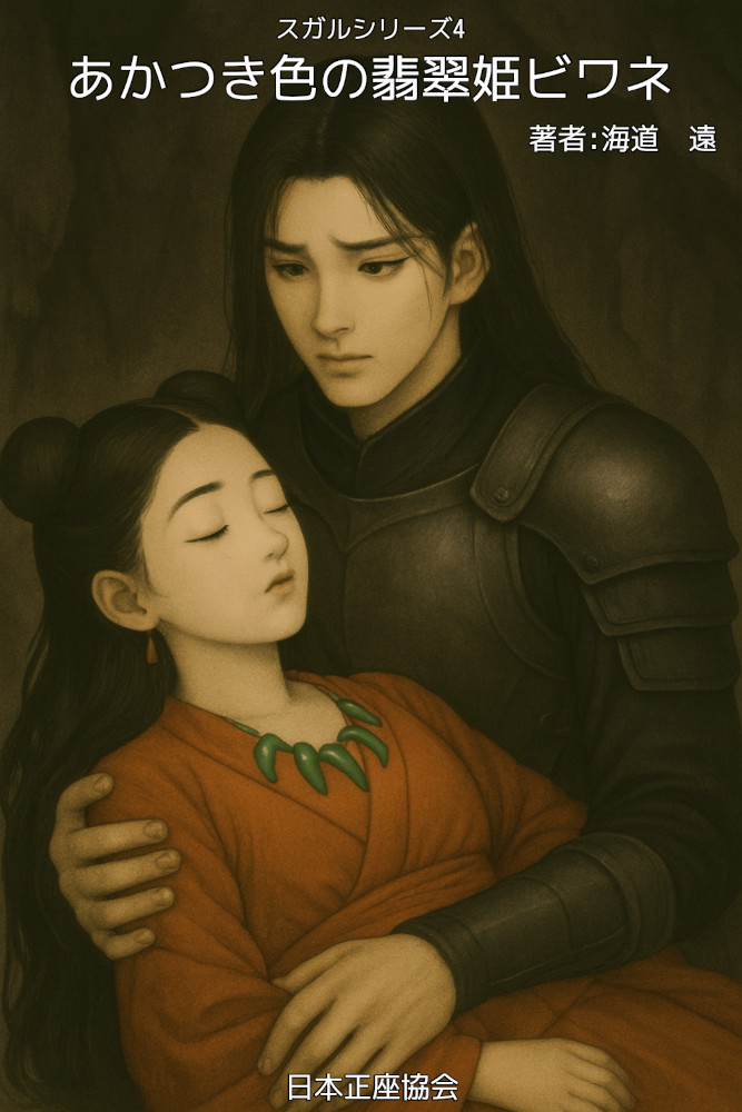 スガルは丹後地方の洞窟であかつき色の衣の女人を翡翠造りの牢で発見。