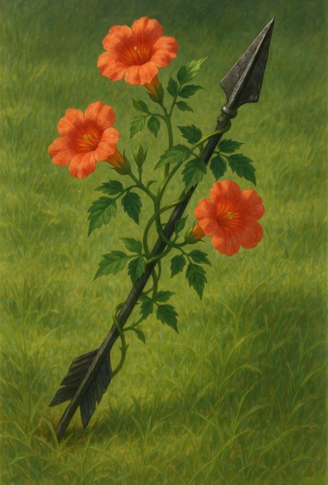 「私はなんとしても、きゃつらの言いなりになるまいと心に決め、抵抗しましたが、牢に入れられてしまい……牢にはのうぜんかずらの黄橙色の花が咲いていて……あの花は『兇つ奴党』に穢されたものにはびこるのです」