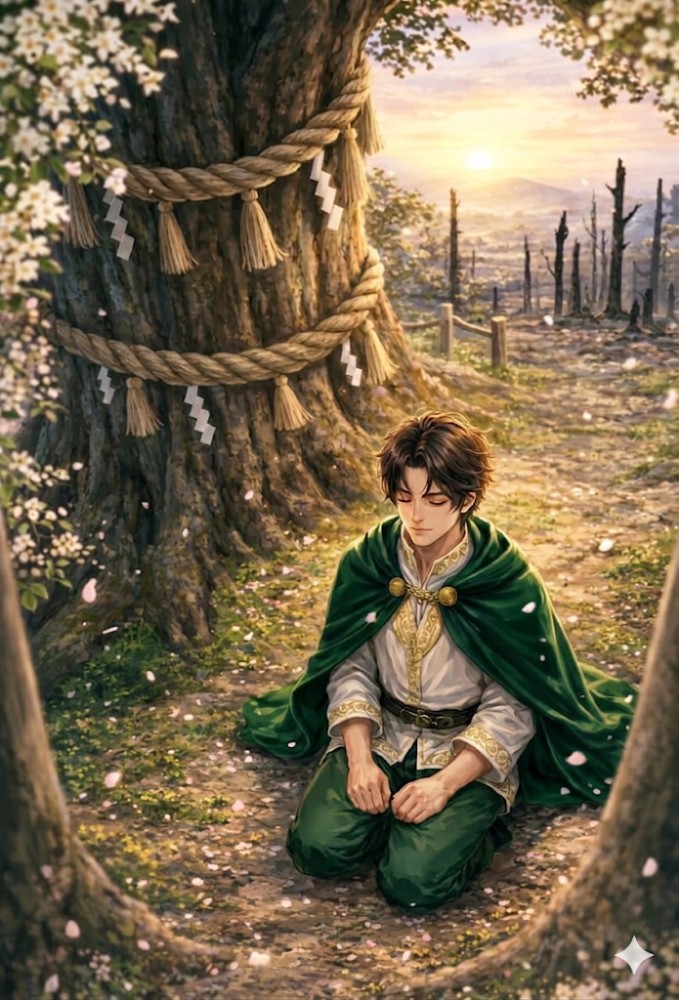 ご神木の神官としての身支度をすっかり整えて、樹はご神木の前に立った。背筋を伸ばした姿が凛々しい。